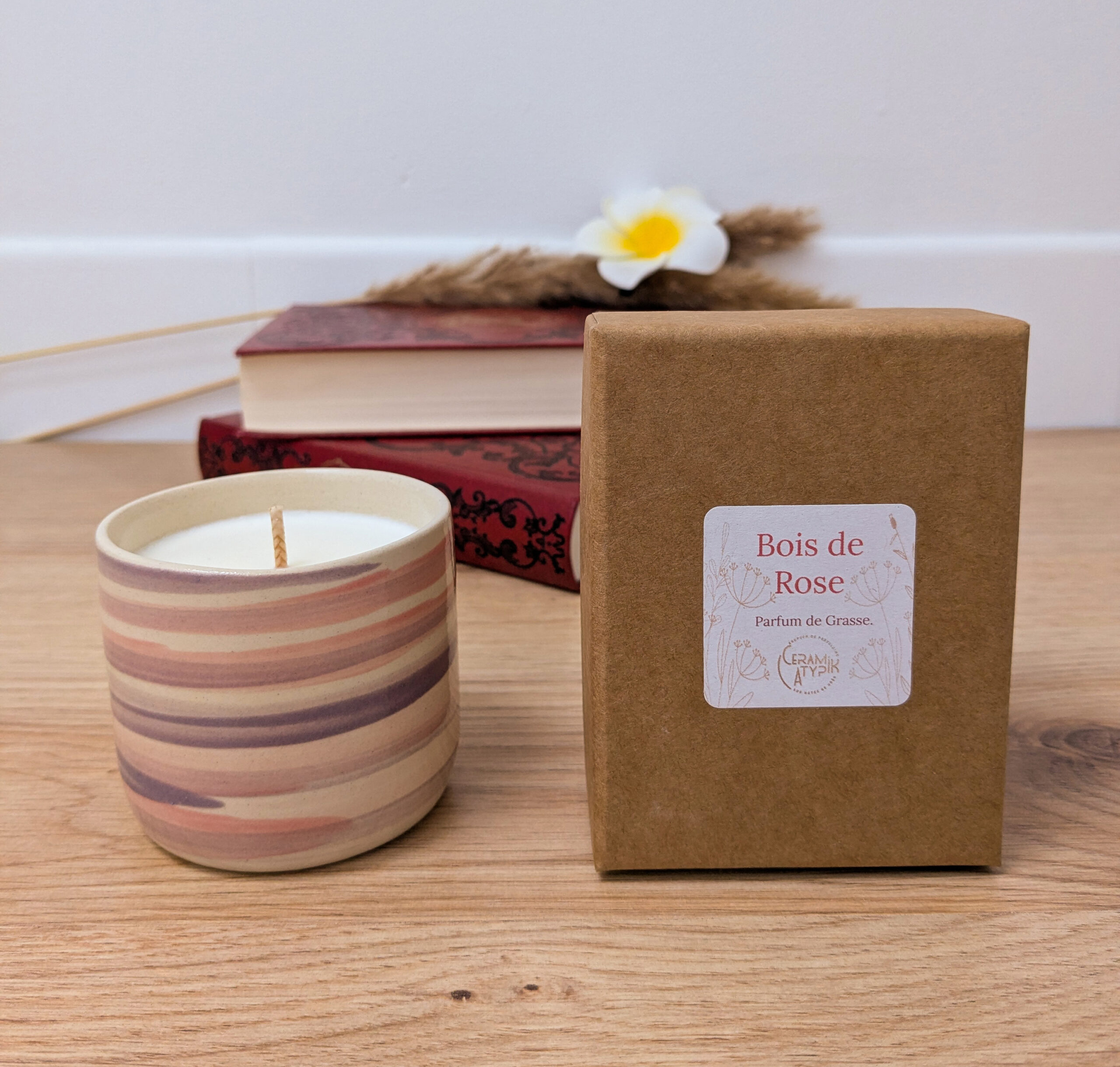 Une bougie artisanale en cire de soja naturelle et parfum de Grasse